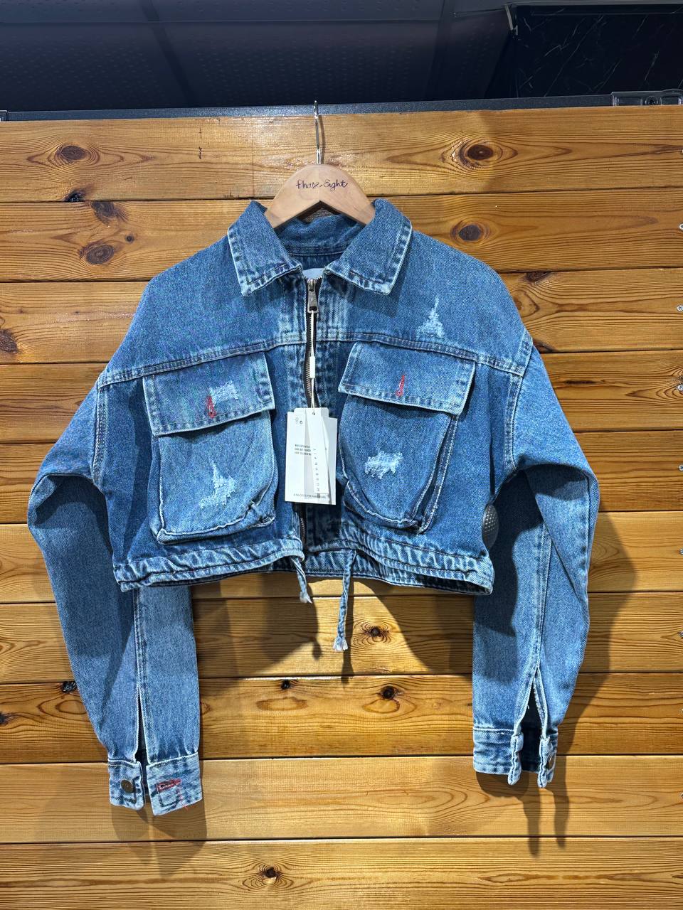 این کت جین زنانه با برش کوتاه و فیت آزاد طراحی شده و برای استایل روزمره کاملاً کاربردی است.