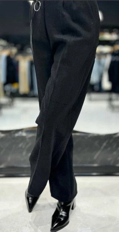 شلوار نیم بگ فوتر کلاسیک مشکی با پارچه طرح کحراه انتخاب بسیار خوبی برای روزهای پاییز و زمستان است.