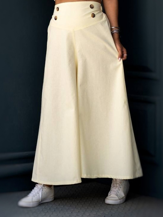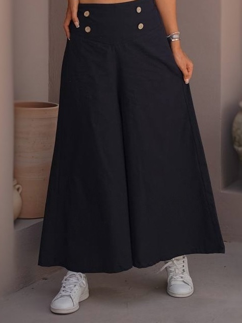 دامنشلواری لینن با طراحی ساده و کاربردی که راحتی شلوار را با ظاهر مرتب دامن ترکیب میکند. پارچه لینن سبک و خنک است و برای روزهای گرم انتخاب منطقی محسوب میشود. دکمههای تزئینی جلو به استایل کاراکتر میدهند بدون اینکه شلوغ شود. فریسایز بودن، آزادی حرکت خوبی ایجاد میکند و رنگهای پاستیلی تا خنثی، ستکردن را آسان کردهاند. مناسب استفاده روزمره، محل کار غیررسمی یا استایل کژوال شهری.