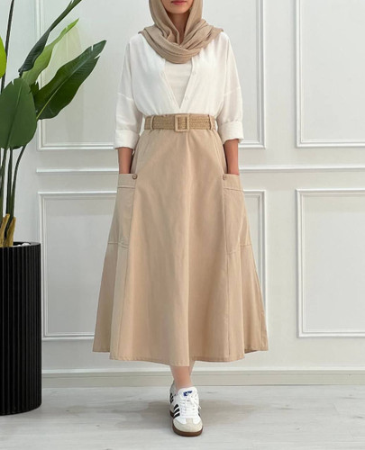 دامن لینن مدل جیبدار دکمهدار کد 19901042