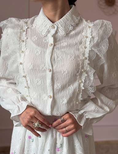 شومیز کتان سفید مدل بیسیک کد 00323003