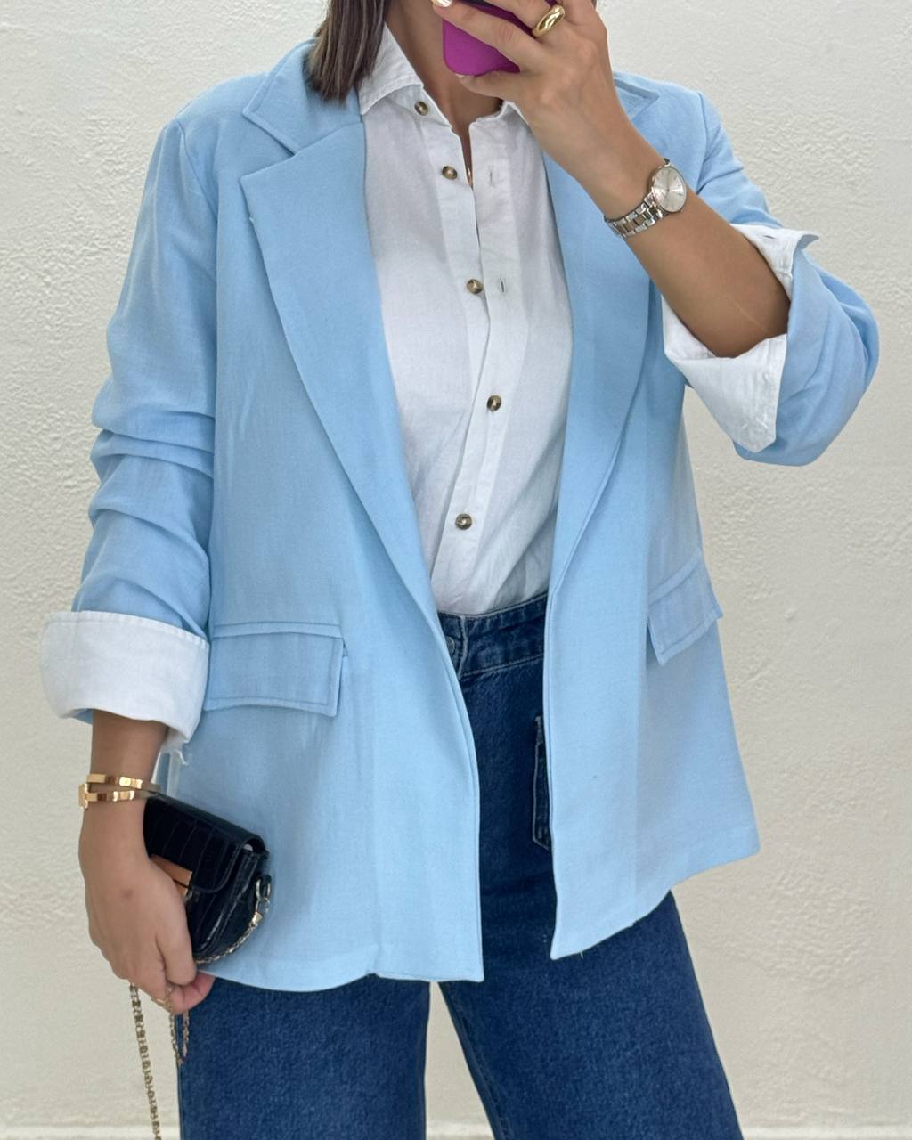شومیز کتان سفید مدل بیسیک کد 00323003